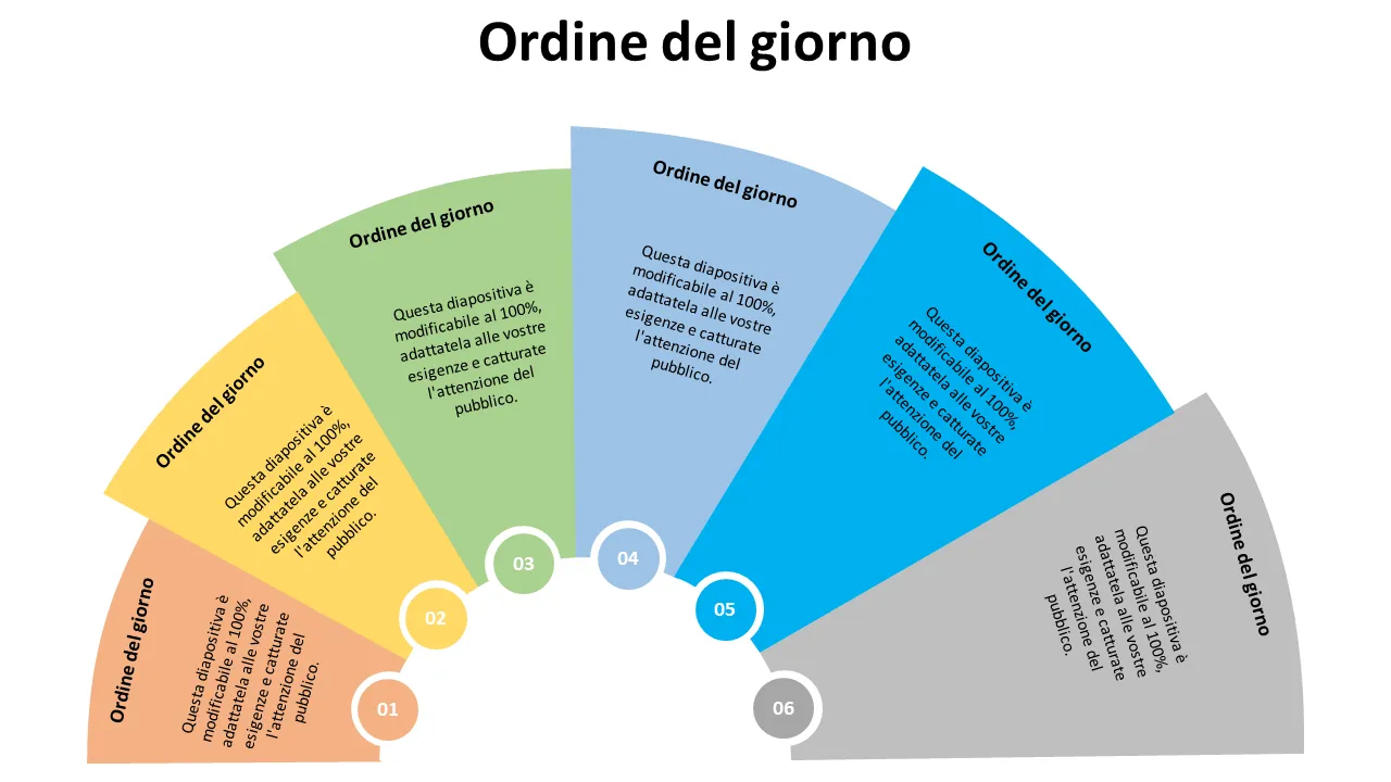 Una chiara presentazione del processo Agenda Six F373 Ppt Powerpoint Presentazione per illustrare processi aziendali, flussi di lavoro e procedure operative. Ideale per il miglioramento dei processi, le SOP e la formazione del team. Modificabile tramite trascinamento.