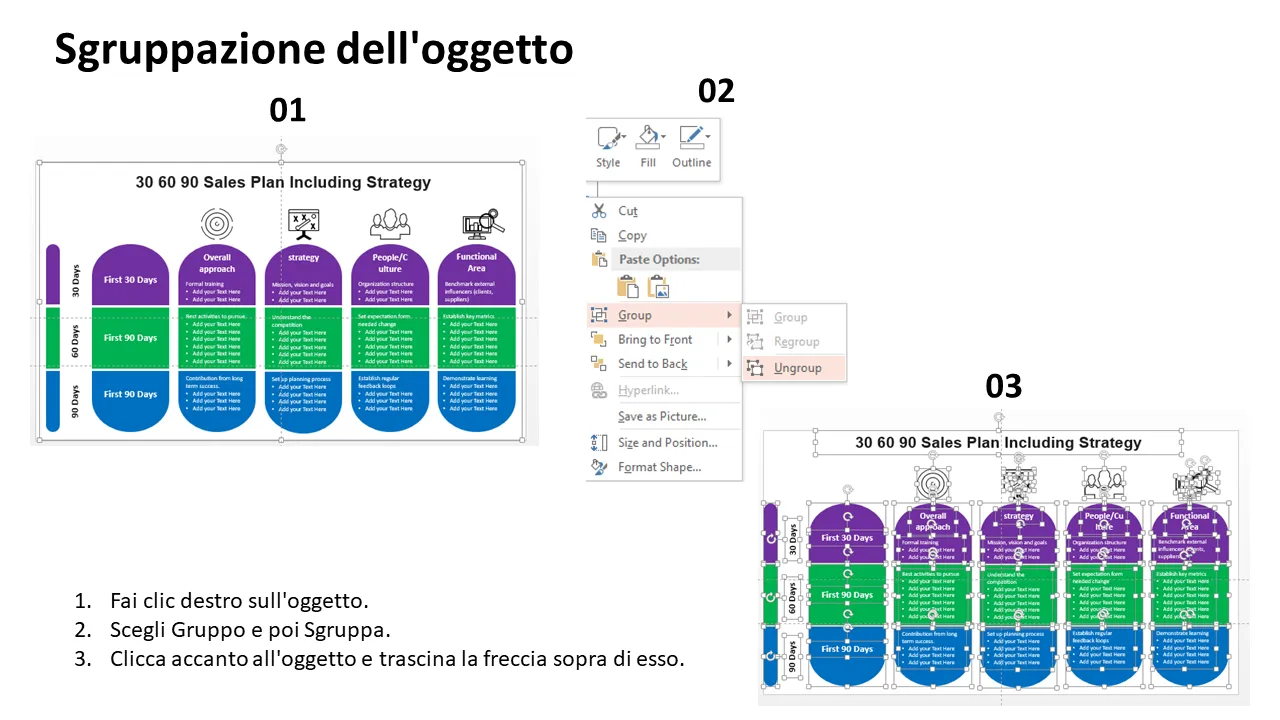 - Tre distinte sezioni temporali per la pianificazione a 30, 60 e 90 giorni