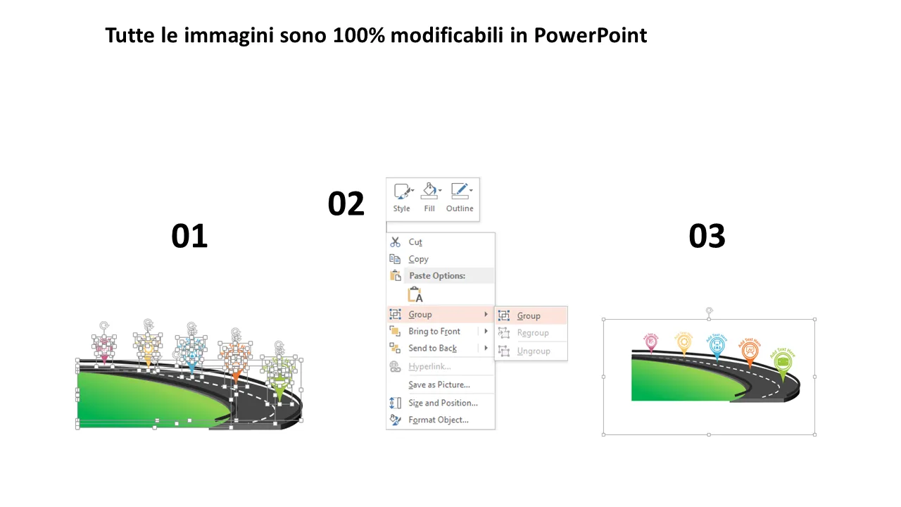 - 100% Modificabile - Tutti gli elementi possono essere modificati
