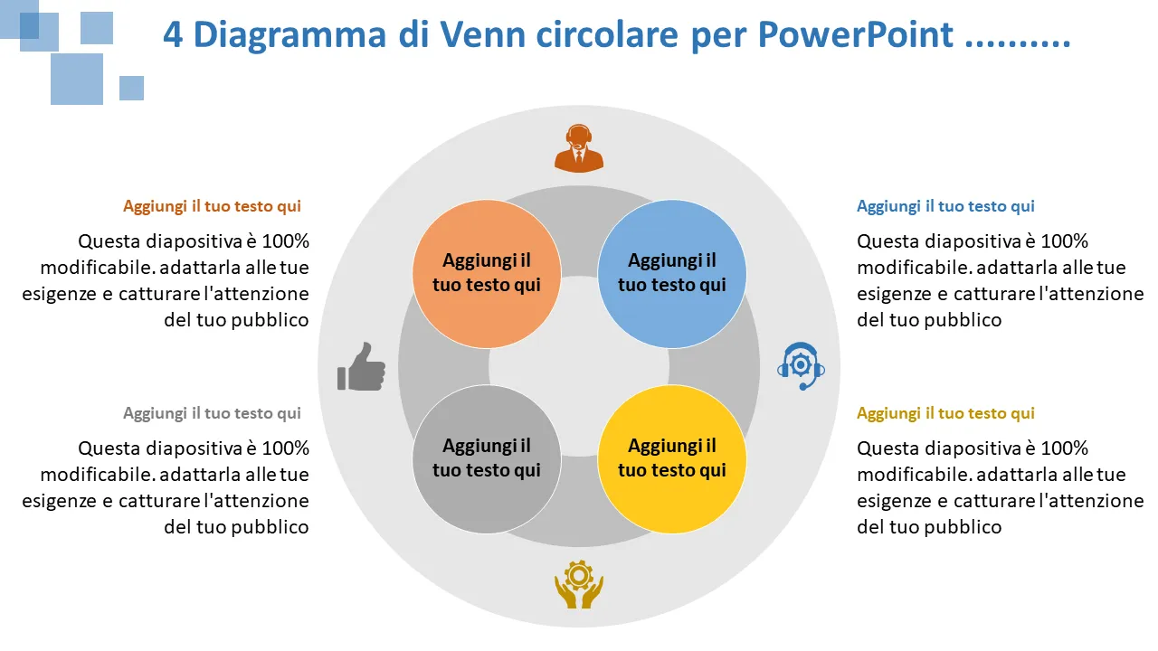 Spiegazione del modello PowerPoint del diagramma di Venn a 4 cerchi