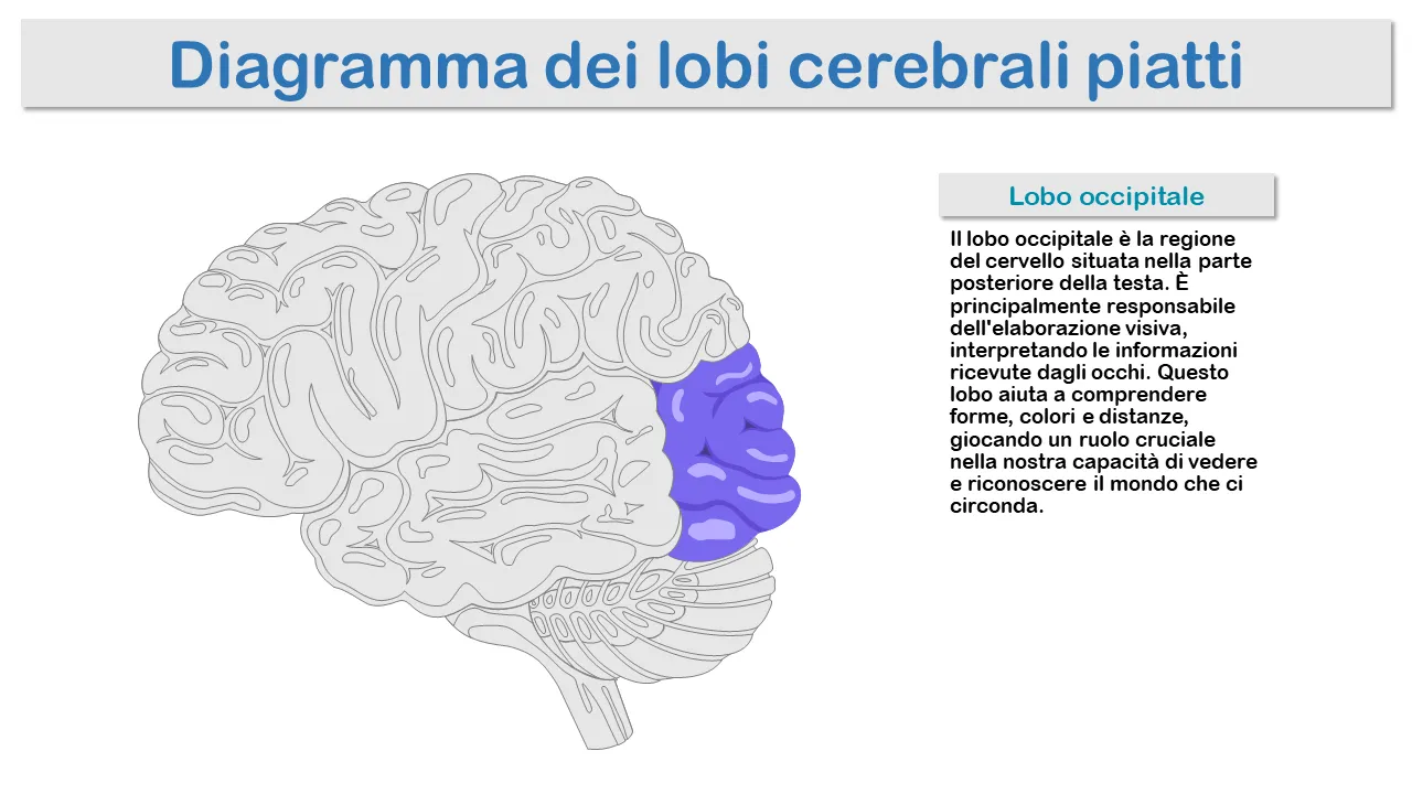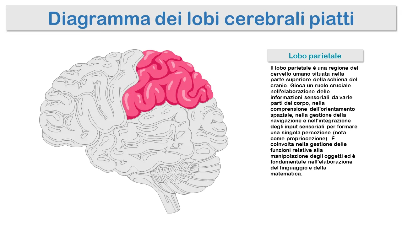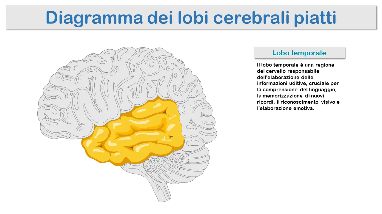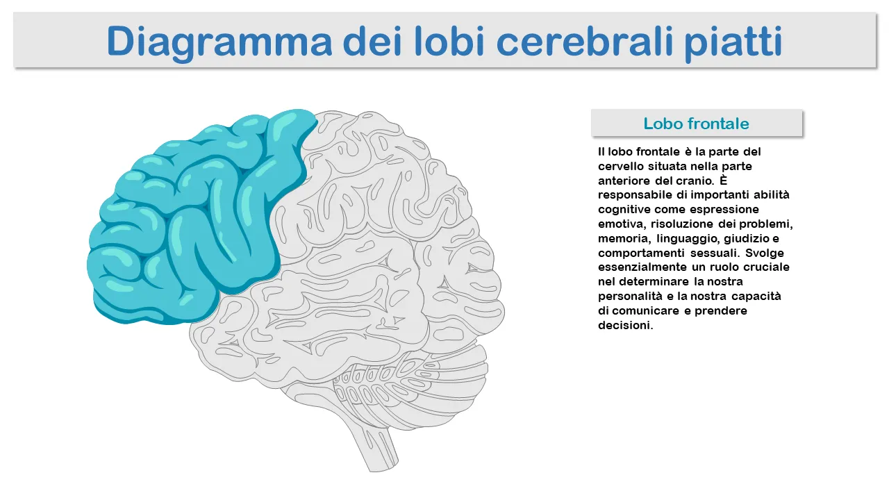 - Diagramma cerebrale in sezione trasversale pre-progettato con lobi etichettati per una rapida erogazione didattica