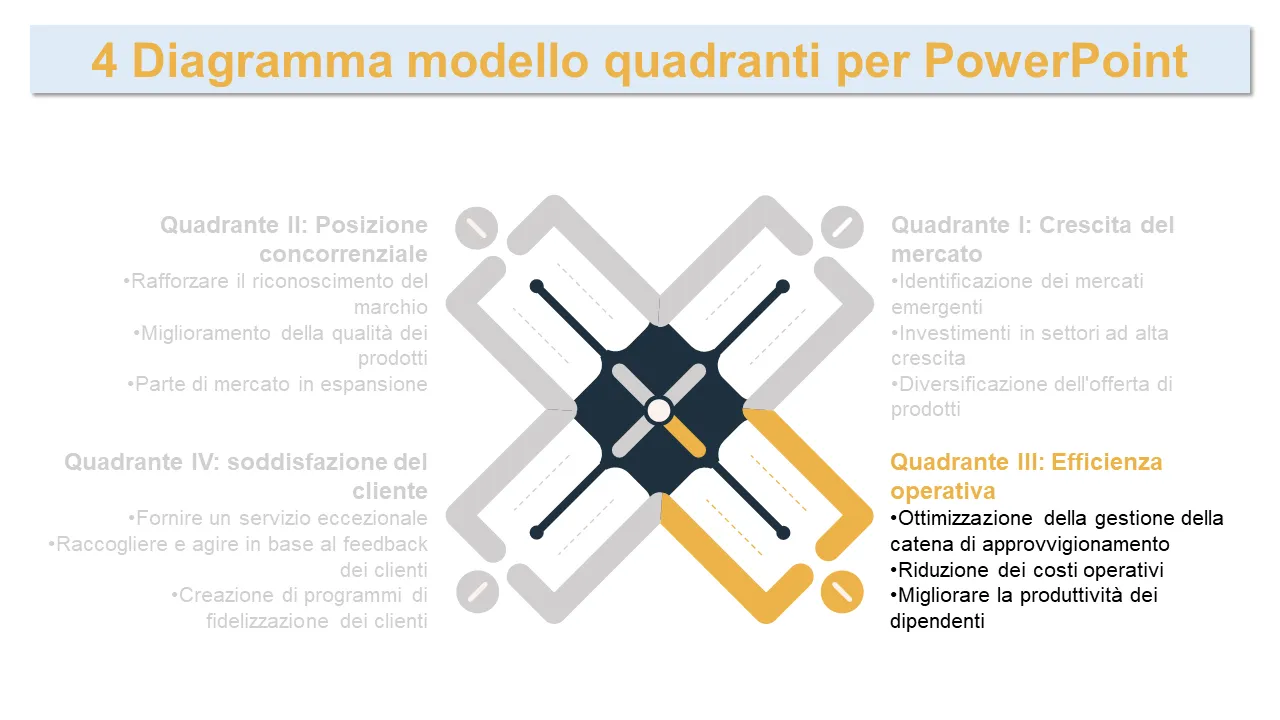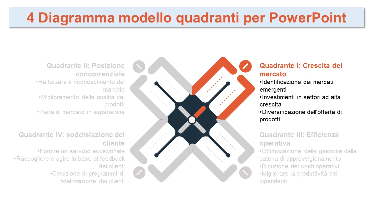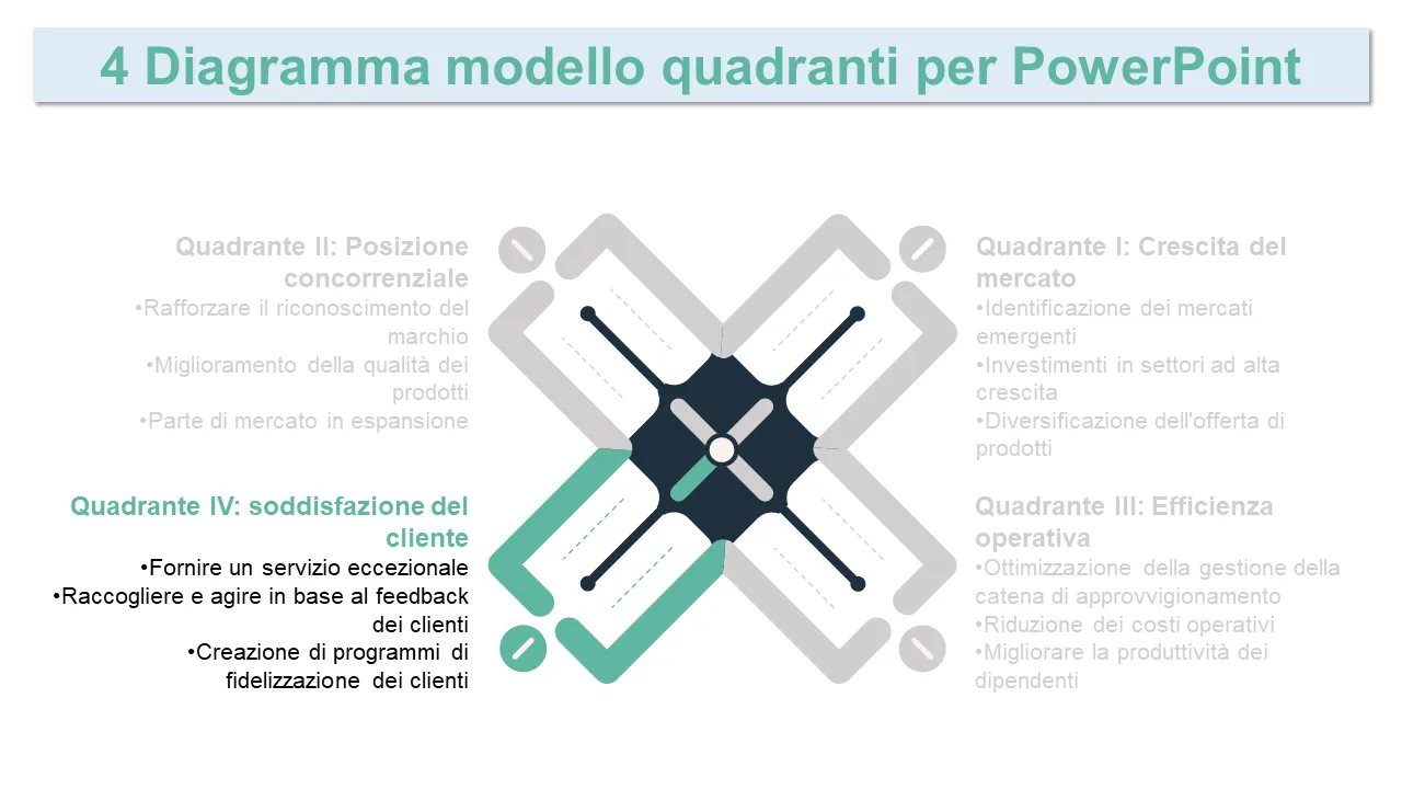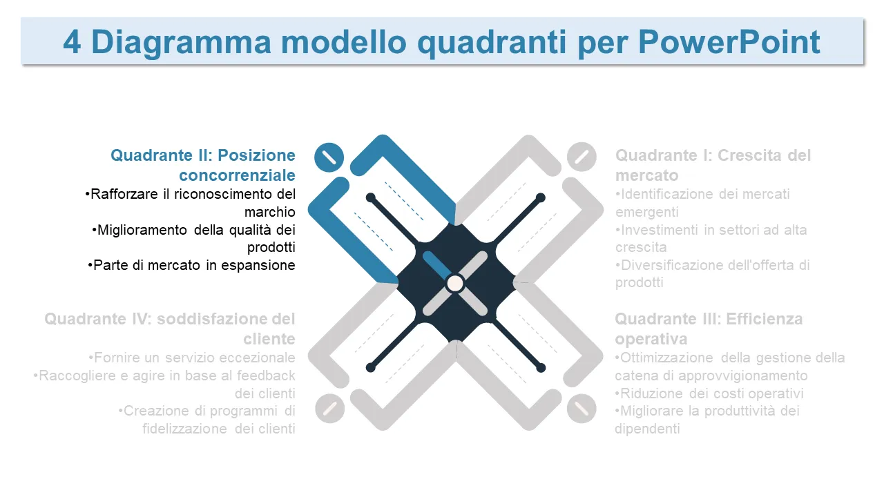Modello PowerPoint per diagramma di strategia aziendale a 4 quadranti