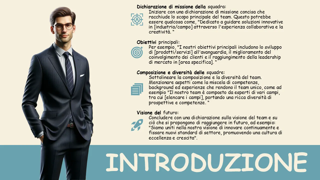 Incontra il team Spiegazione delle diapositive del modello Powerpoint