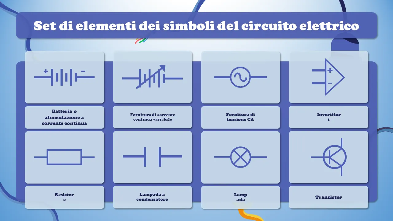Caratteristiche di Insieme di elementi di simboli del circuito elettrico per Powerpoint