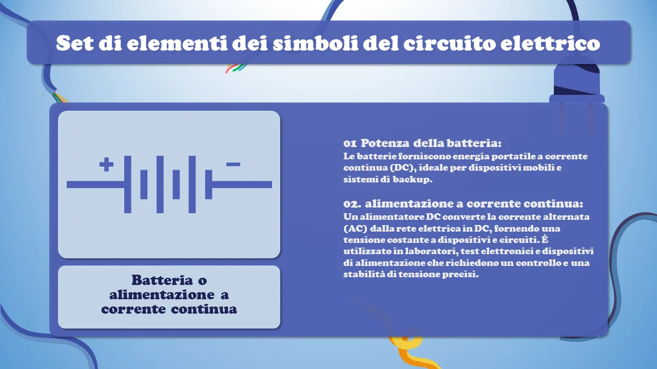 Set di elementi di simboli del circuito elettrico per spiegazione Powerpoint