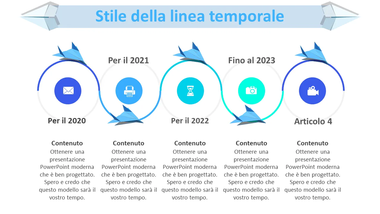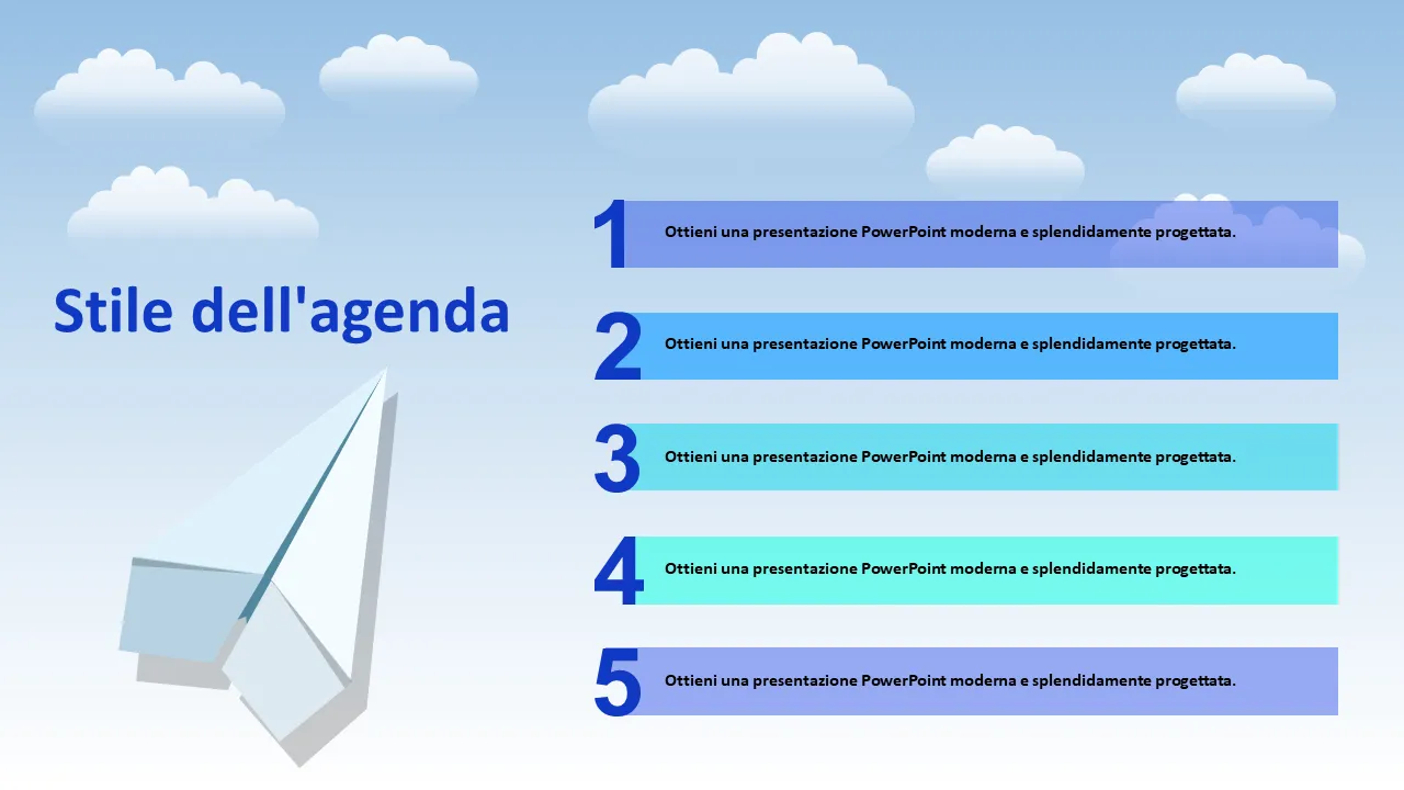 Spiegazione del modello PowerPoint per la progettazione di un aereo di carta blu