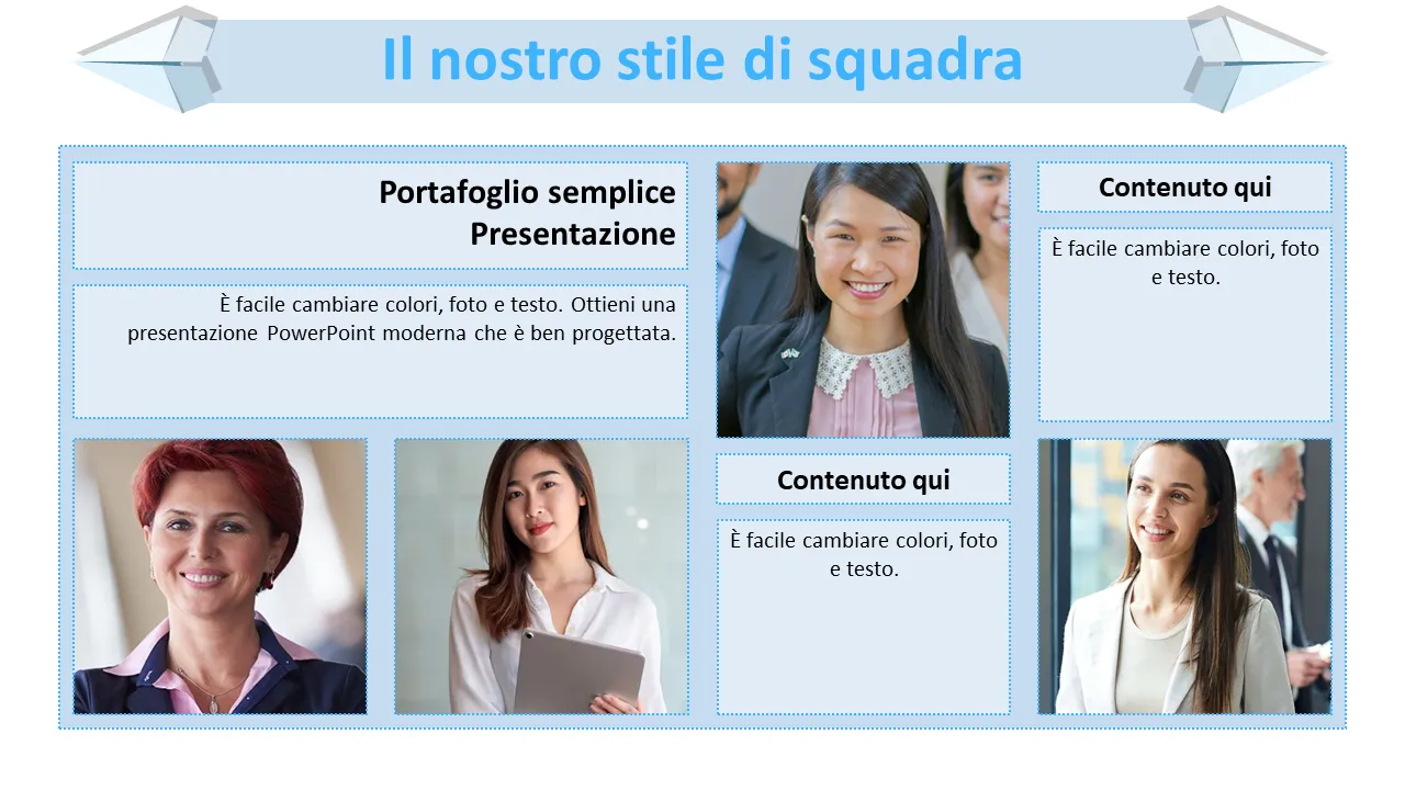 - Moderno motivo visivo a forma di aereo di carta blu che rafforza l'innovazione e la direzione