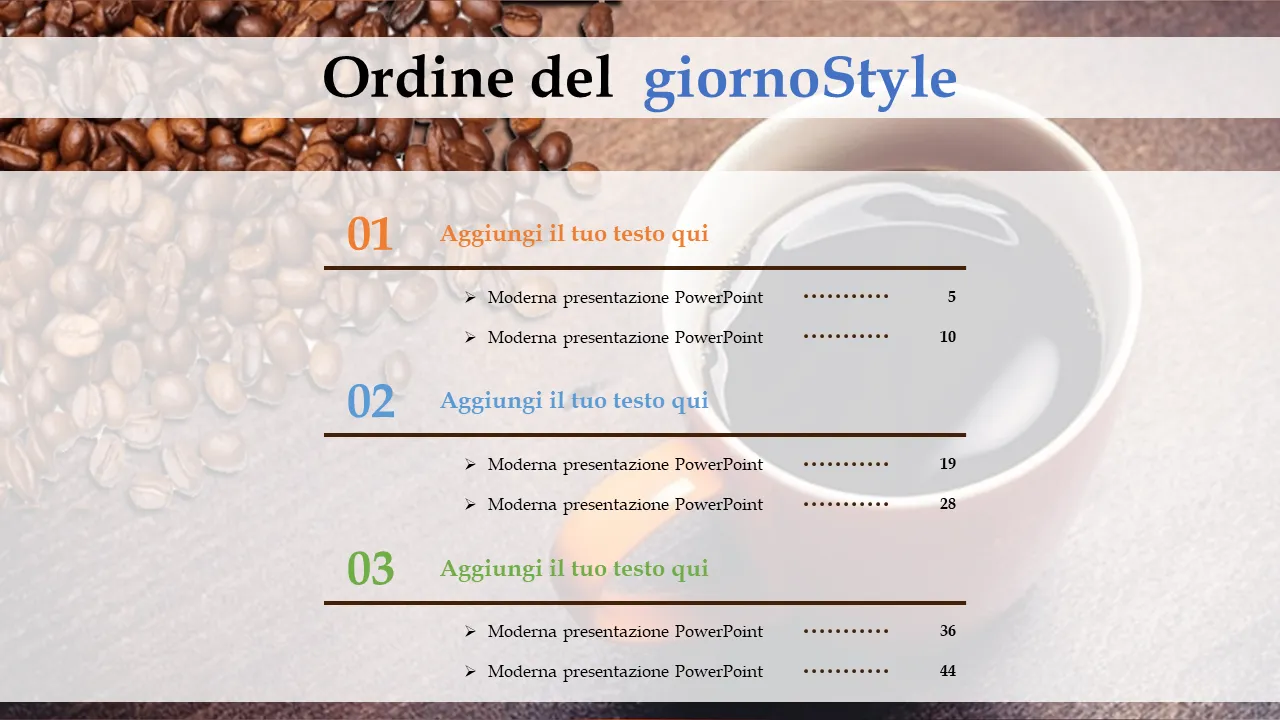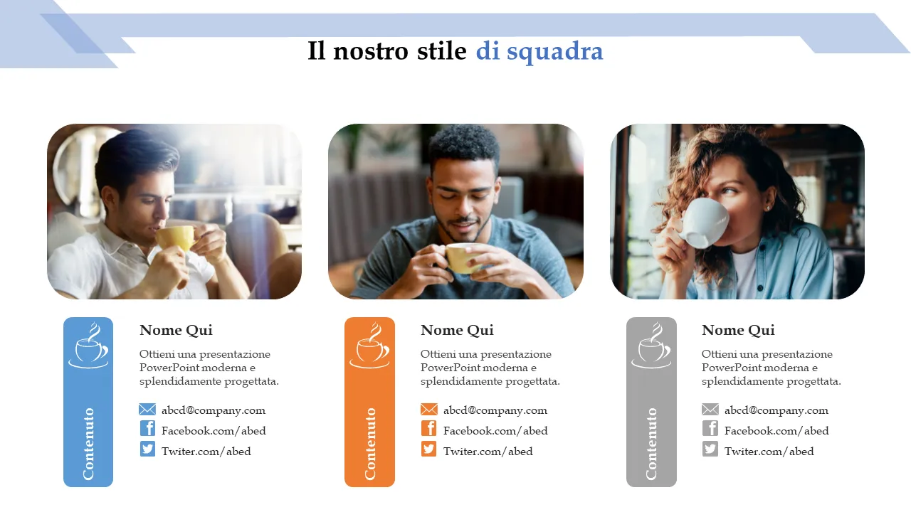 - Diapositive di team e organizzazione progettate per mostrare leadership e struttura con un design ispirato ai chicchi di caffè elementi.