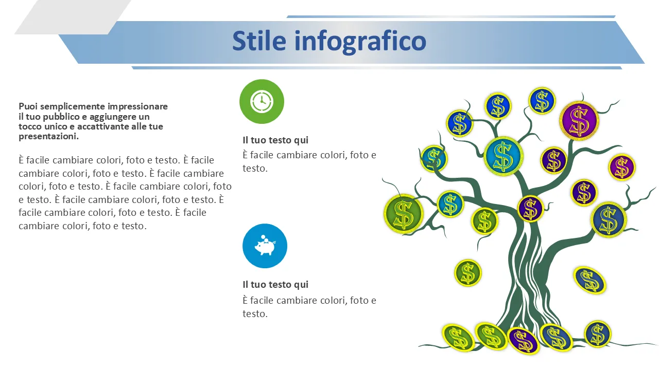 - Linguaggio di progettazione coerente in tutte le diapositive per una narrazione coerente