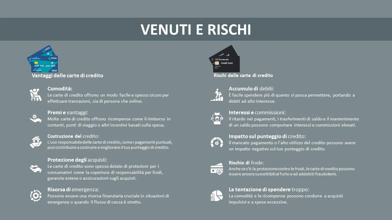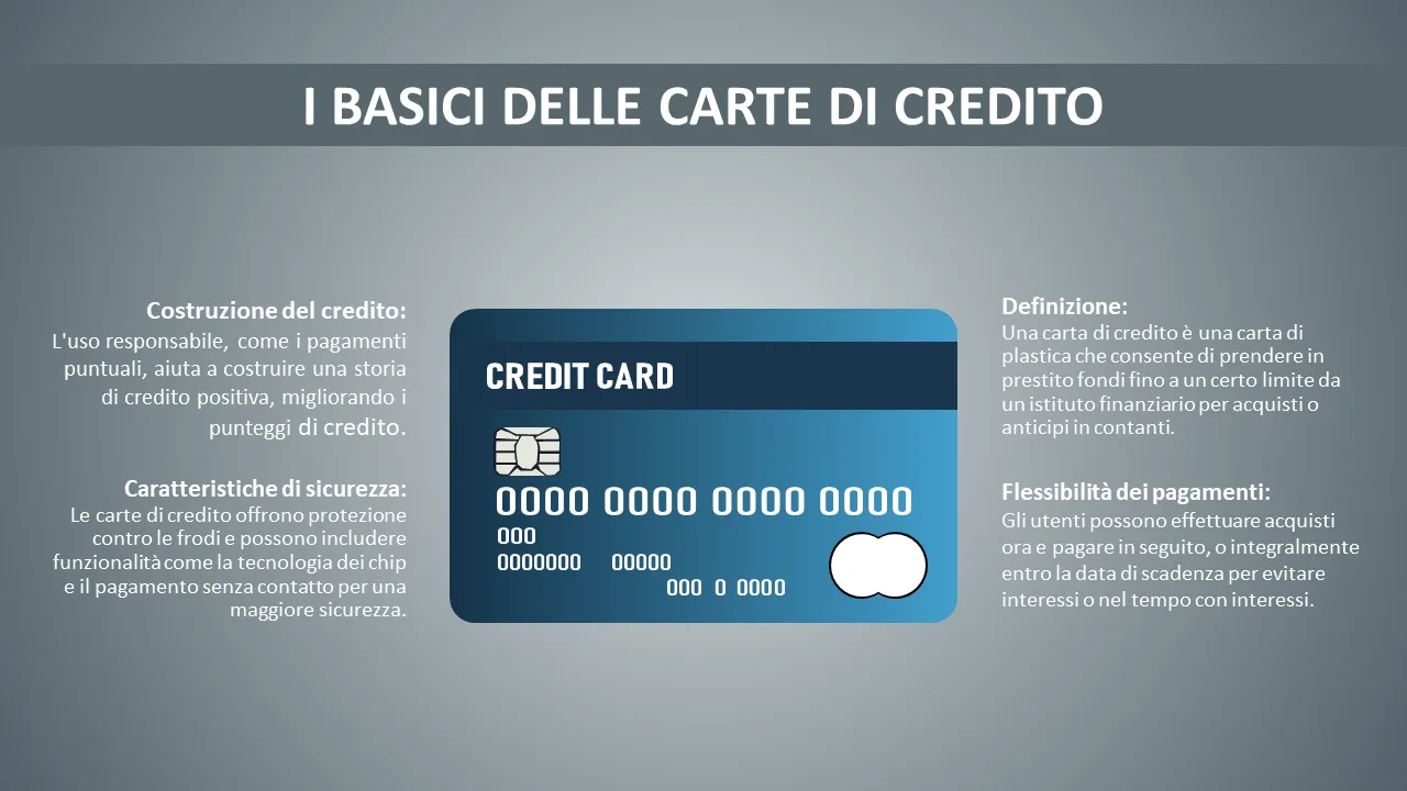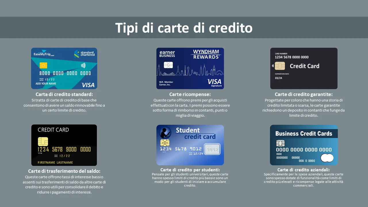 - Chiara gerarchia visiva per spiegare i tipi di carta di credito e i relativi vantaggi