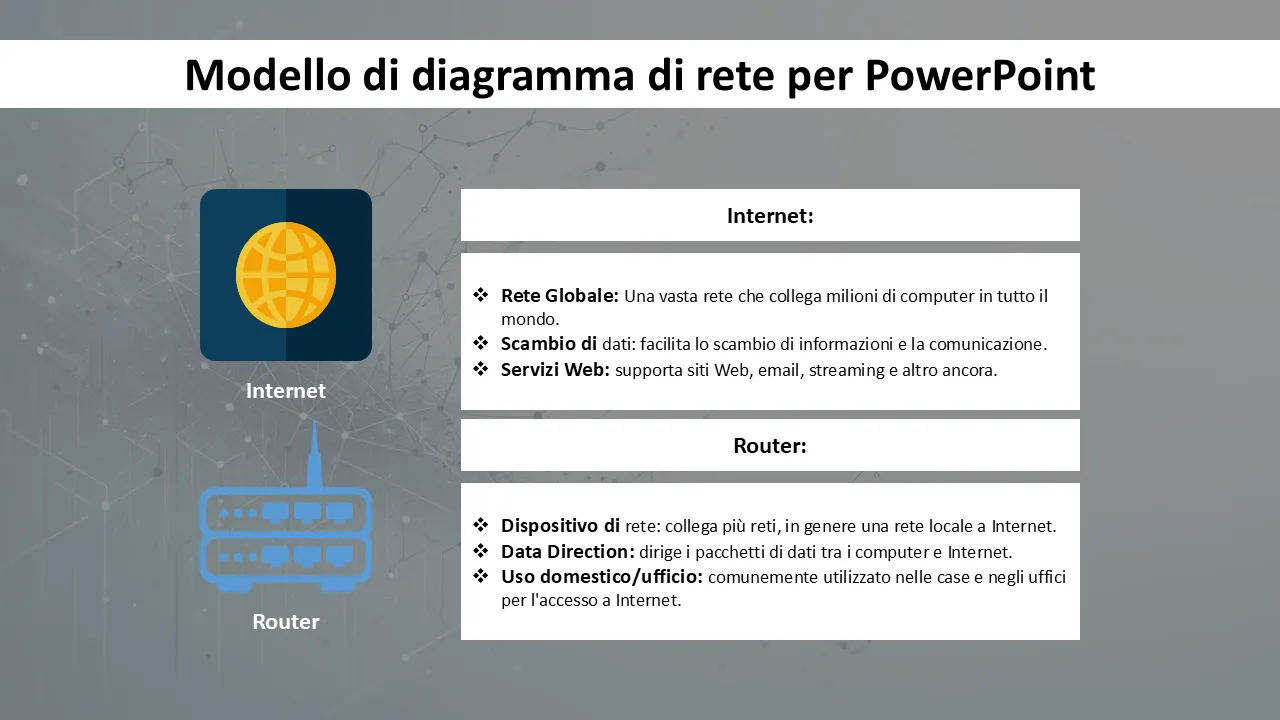 Modello di diagramma di rete per spiegazioni in Powerpoint