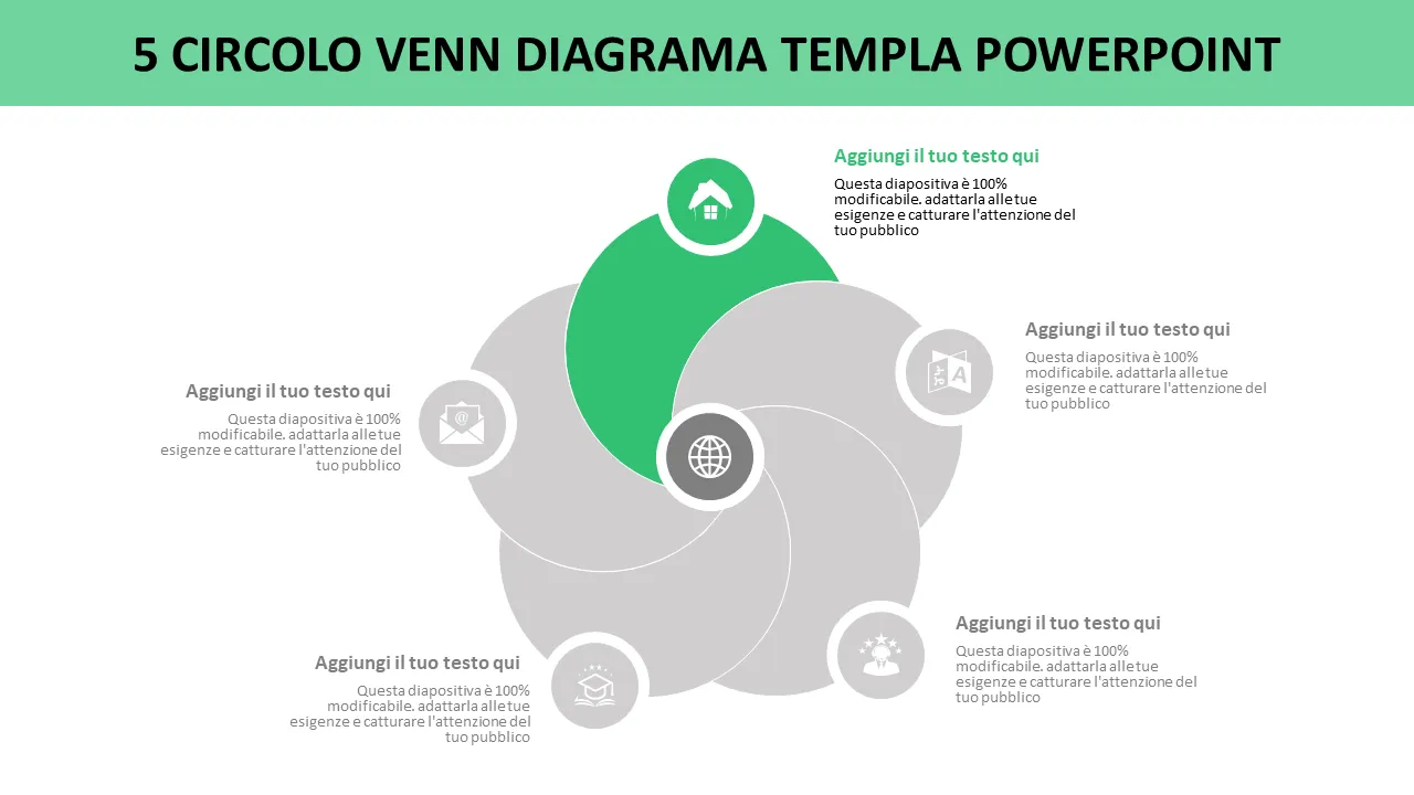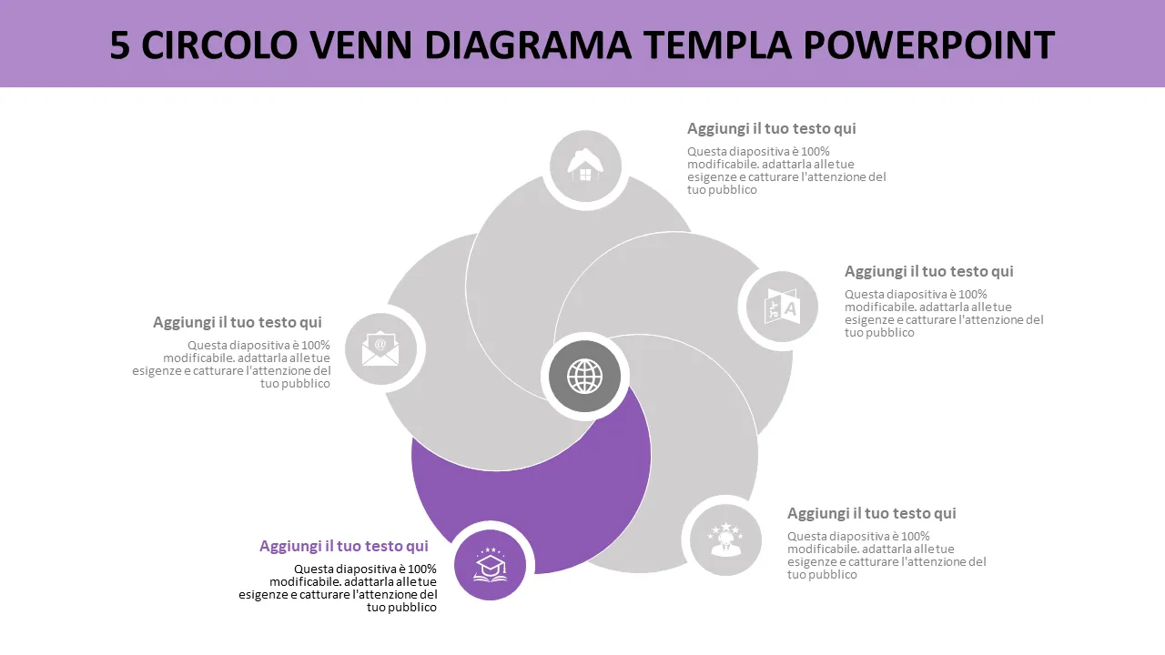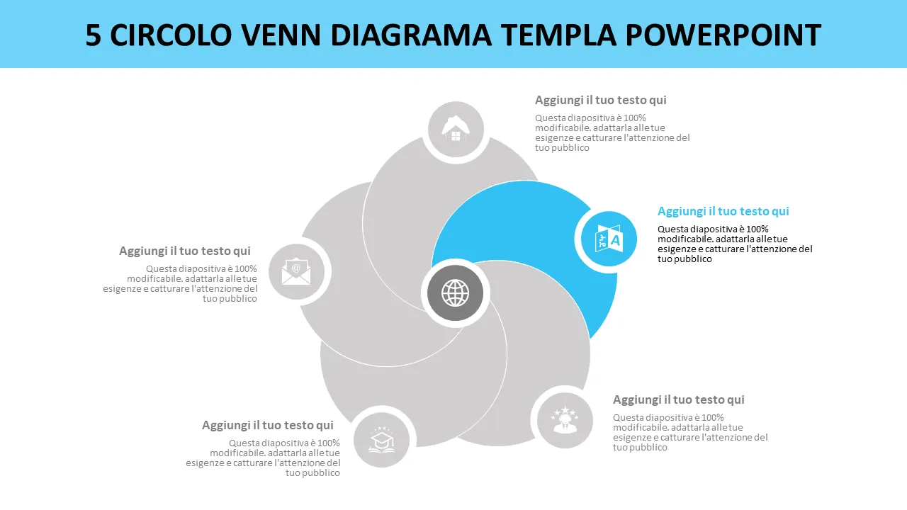 Modello PowerPoint con diagramma di Venn a 5 cerchi