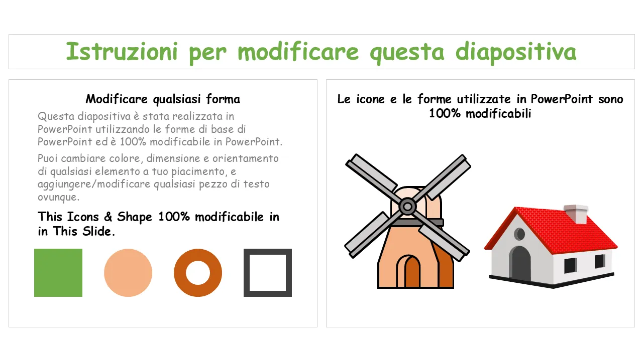 - Testo, forme, colori e icone completamente modificabili per la completa personalizzazione del marchio