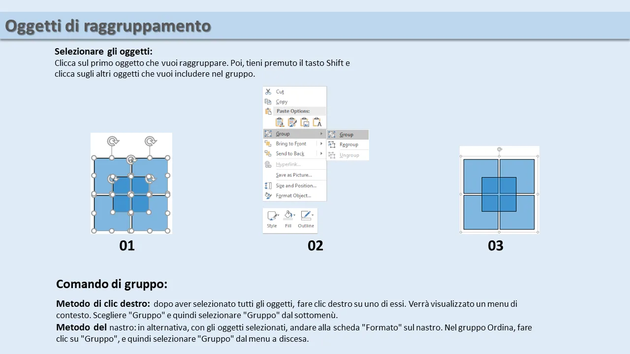 - Include guide didattiche per raggruppare e organizzare gli elementi in modo efficiente