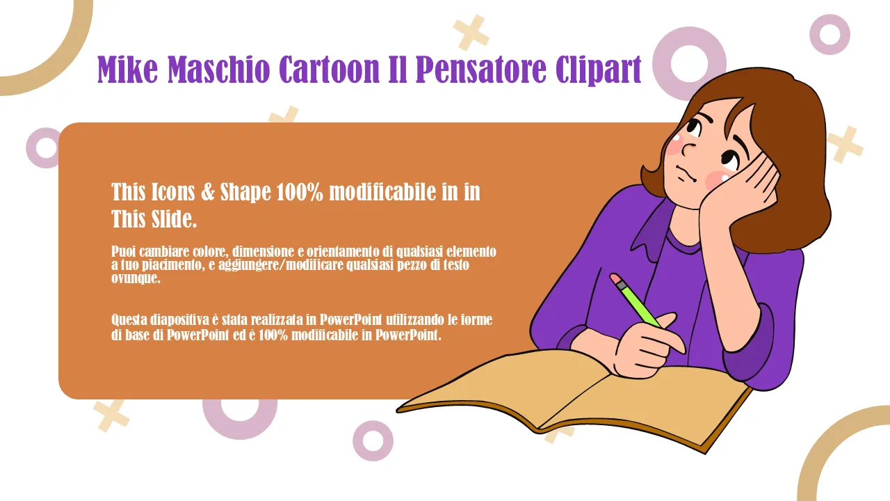 Caratteristiche di Modello PowerPoint di Mike Male Cartoon The Thinker Clipart per presentazioni professionali