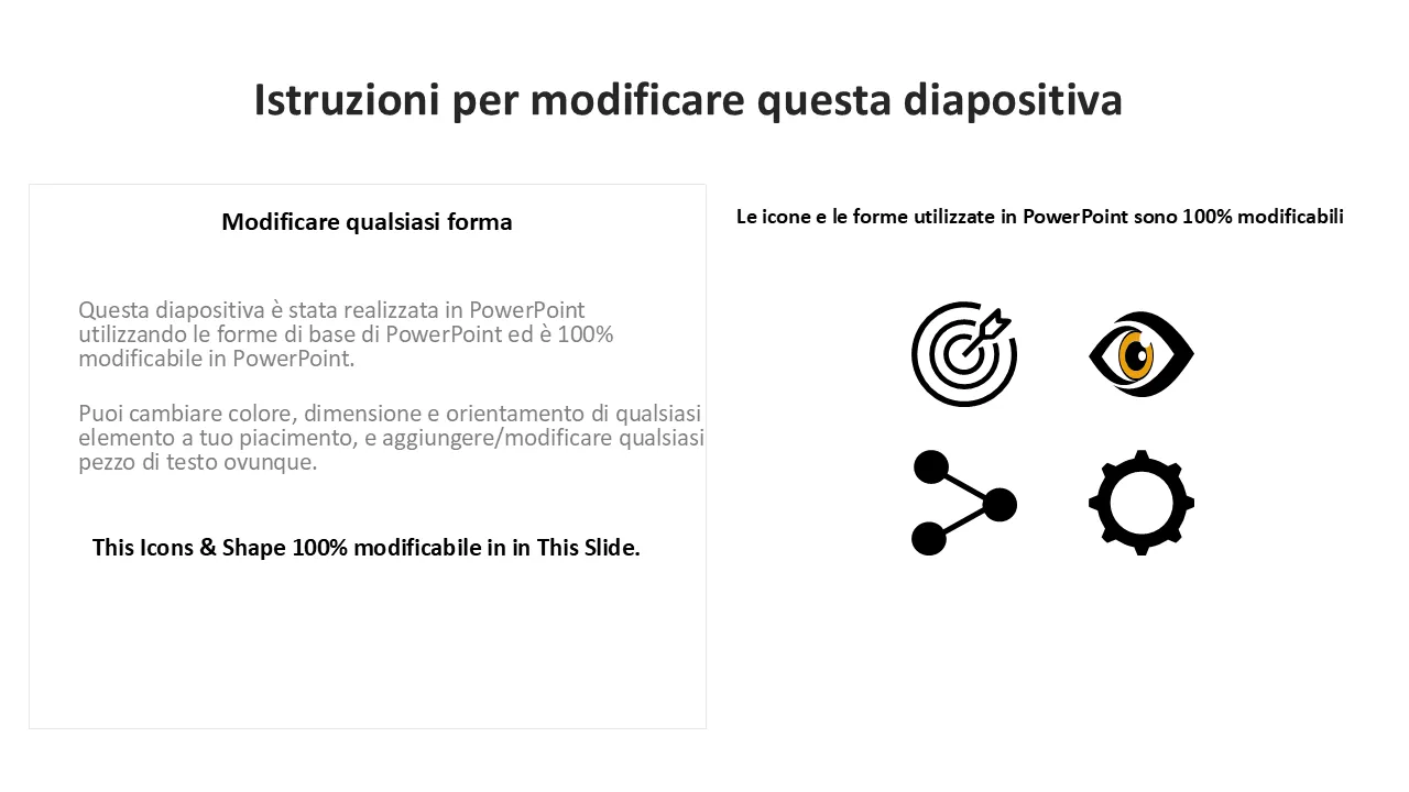 - Testo, forme, colori e icone completamente modificabili per una completa personalizzazione del marchio