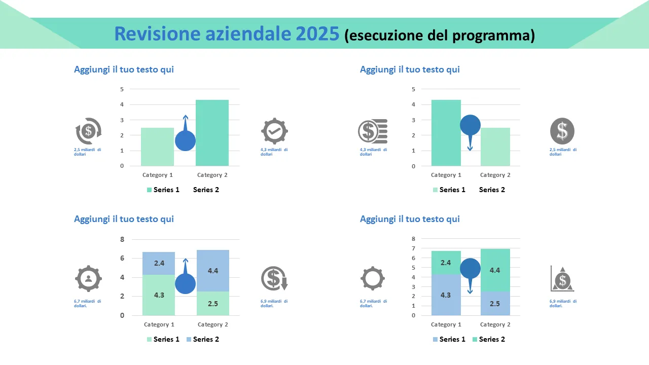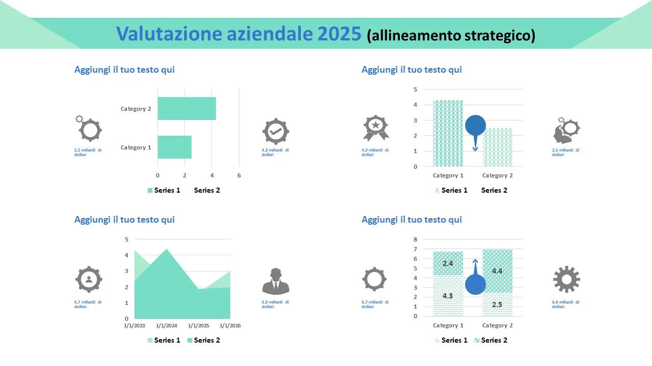 - Struttura flessibile delle diapositive per accogliere dati e obiettivi specifici dell'azienda