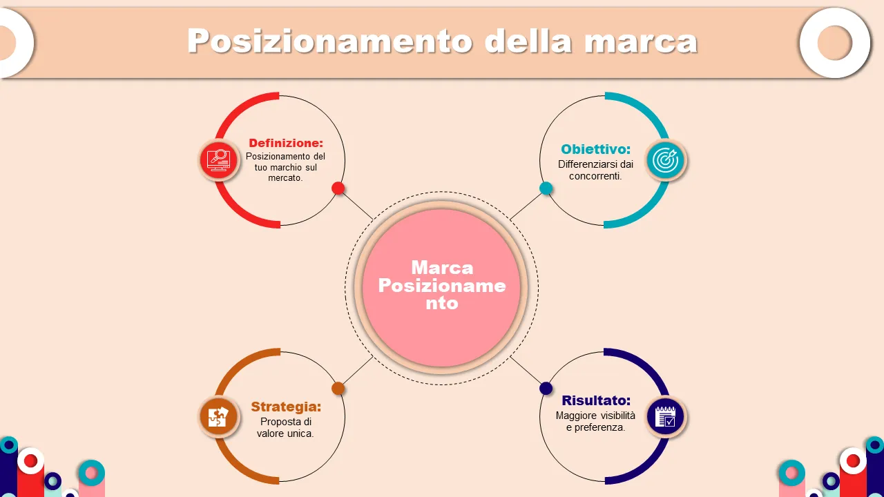 - Diapositive predefinite per posizionamento del marchio, personalità e messaggi visivi con layout coerente