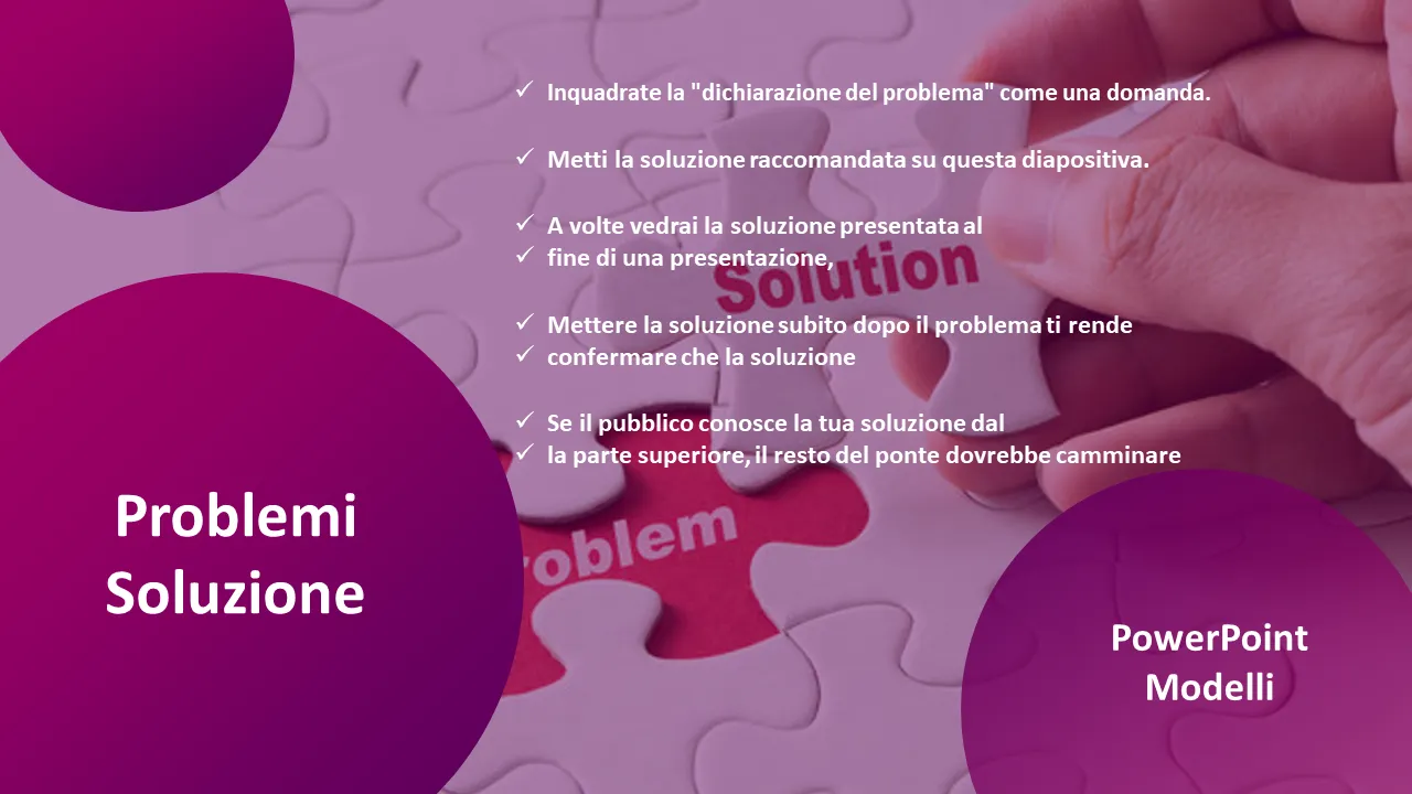 - Quadro di problemi e soluzioni per definire chiaramente le sfide aziendali e i rimedi proposti