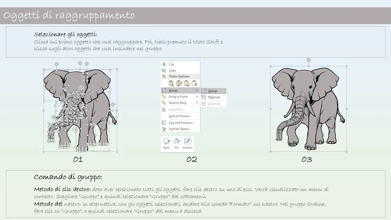 - Funzionalità di trascinamento per un rapido assemblaggio della presentazione