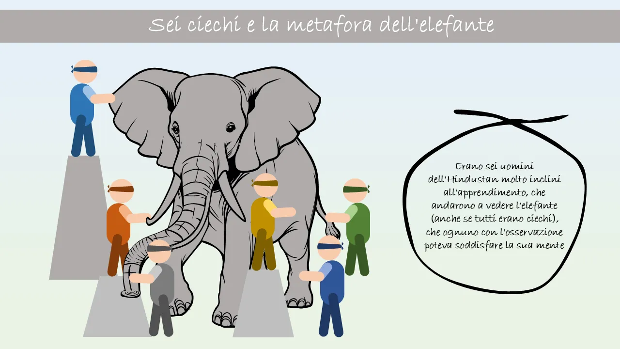 Modello PowerPoint - Sei uomini ciechi e la metafora dell'elefante per presentazioni professionali