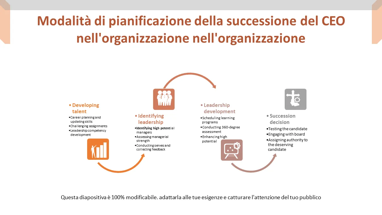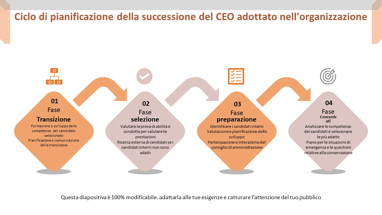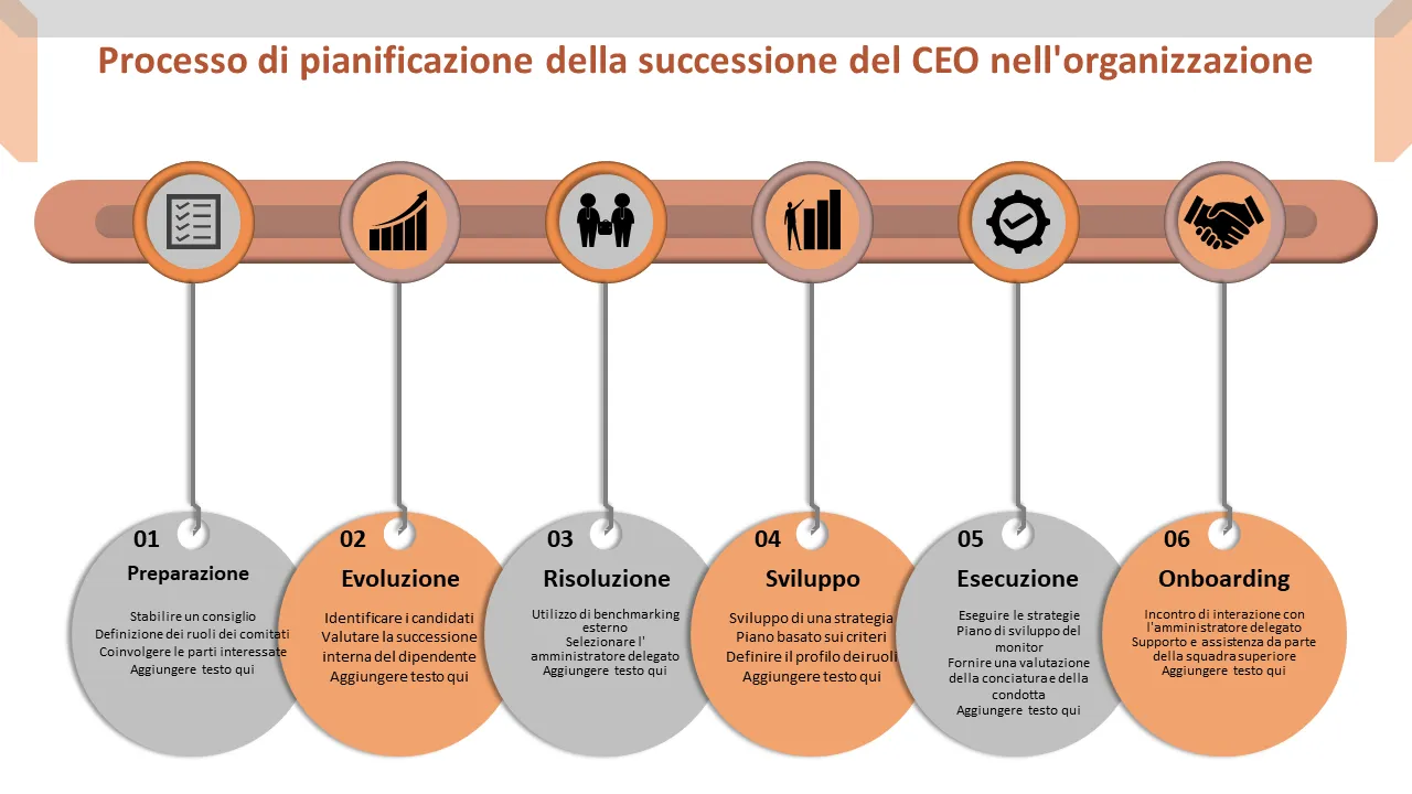 Spiegazione del modello PowerPoint del processo di pianificazione della successione del CEO