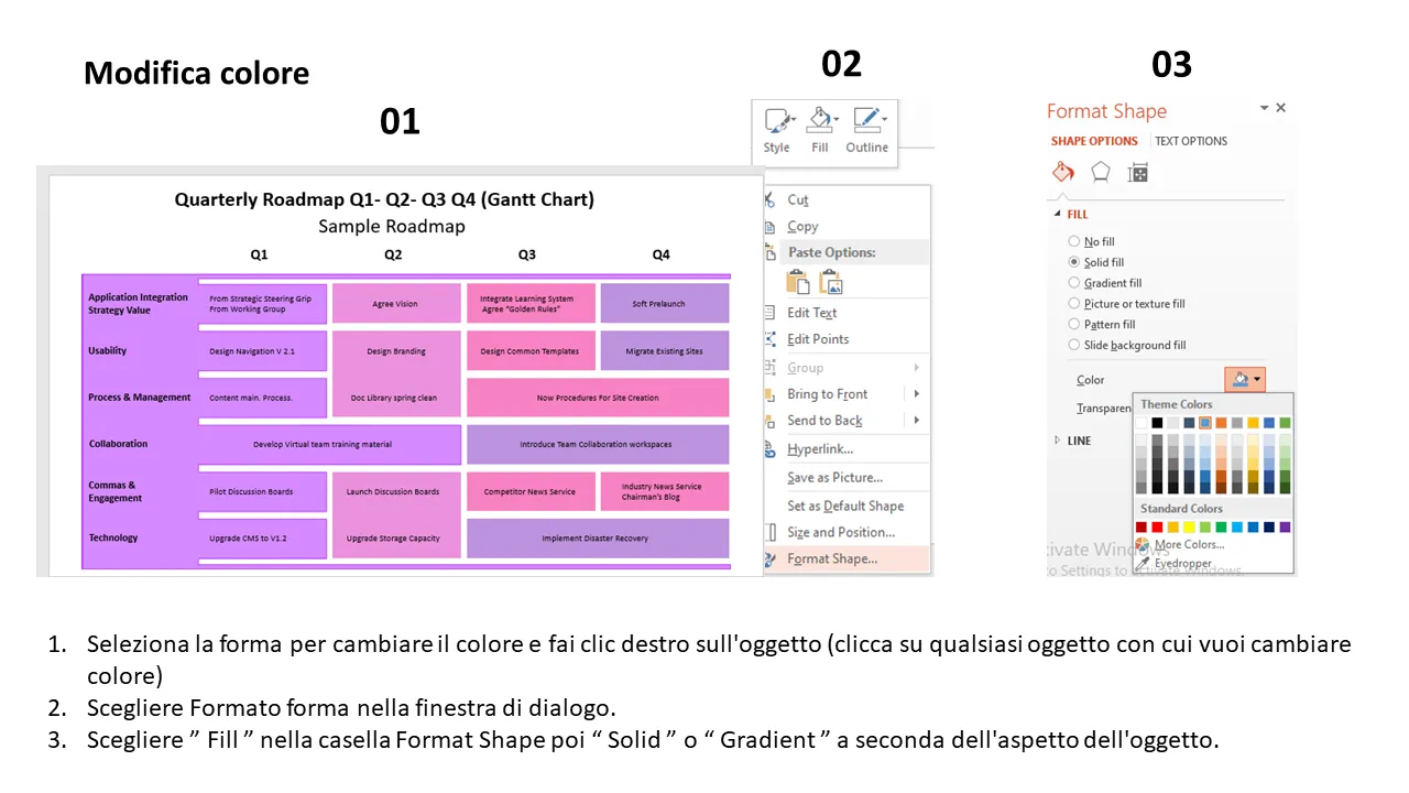 Spiegazione del modello PowerPoint per la pianificazione della roadmap trimestrale