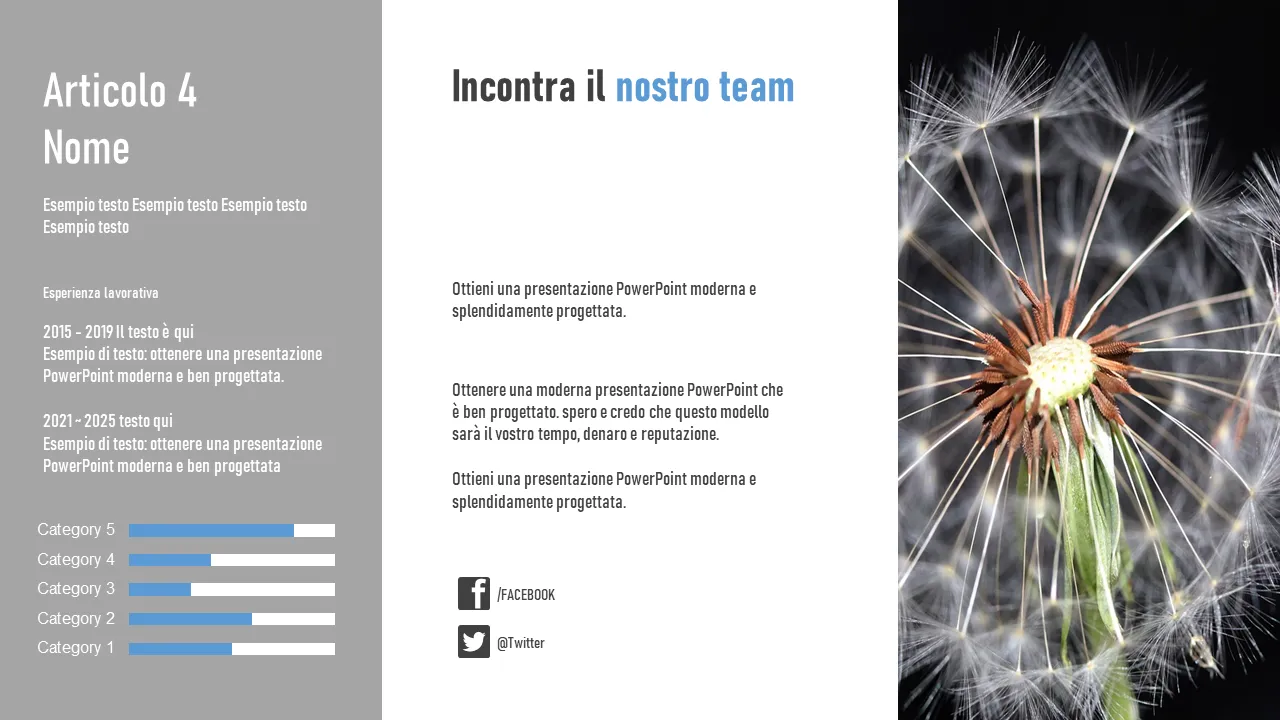 - Layout moderno e minimalista con tipografia pulita per un impatto professionale