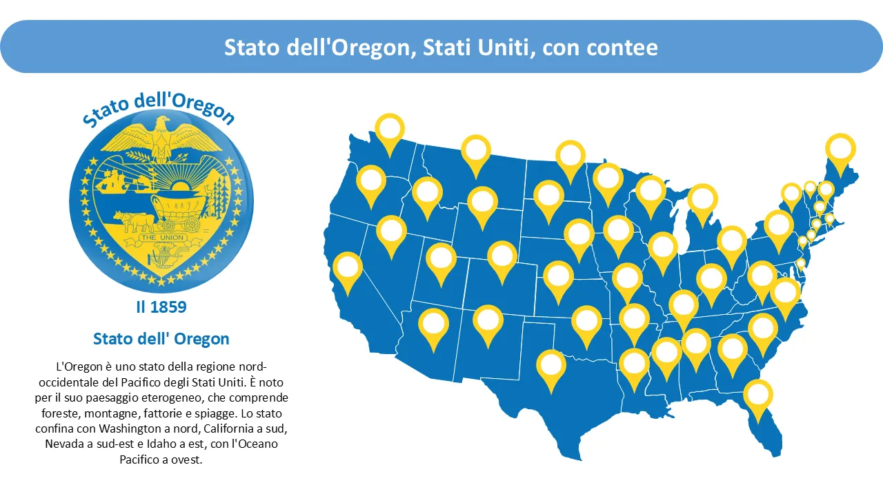 Spiegazione della mappa Powerpoint dello stato americano dell'Oregon con le contee
