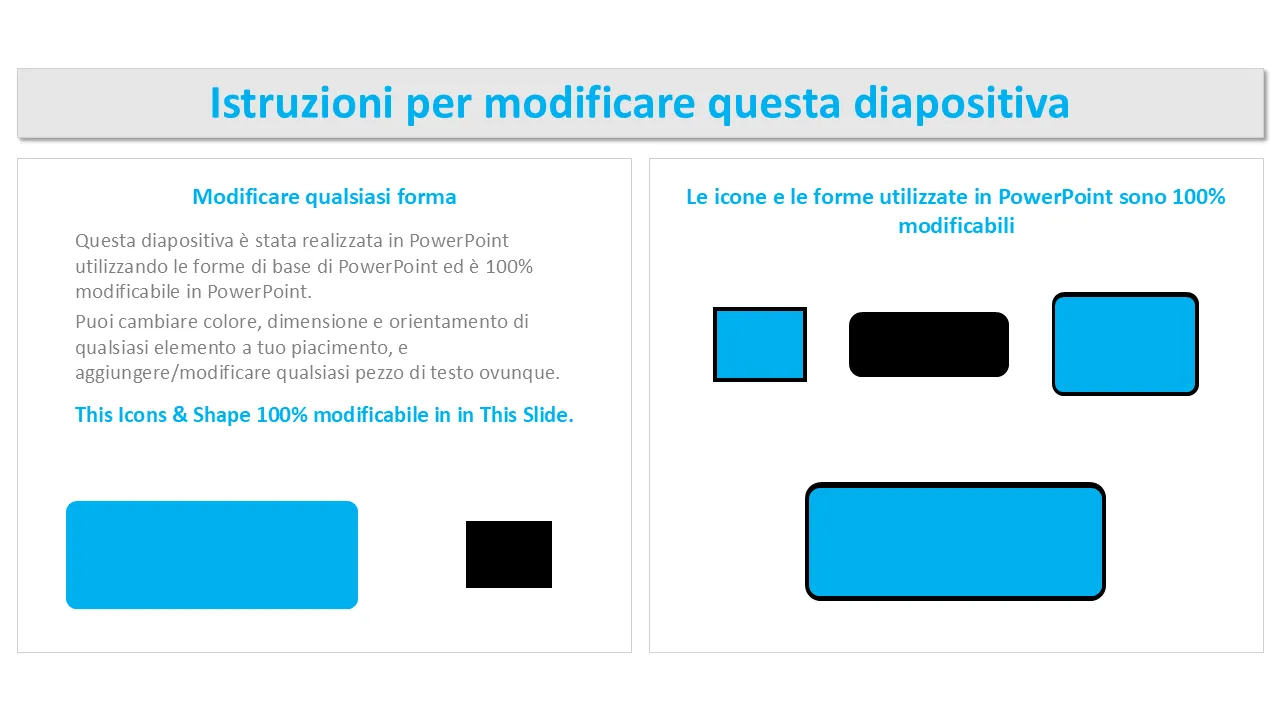 - Testo, forme, colori e icone completamente modificabili per la completa personalizzazione del marchio